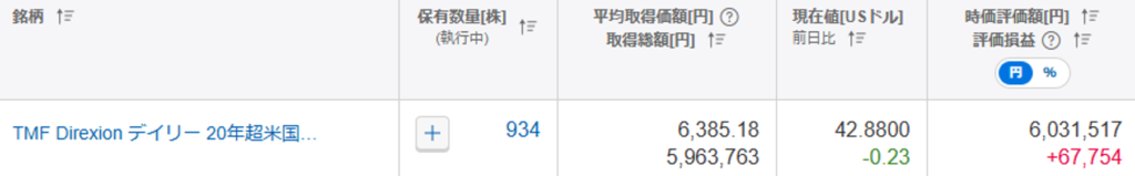 また、この先円高になって円ベースの評価額が下がっても、3倍レバレッジのおかげてTMF自体は上がると思います。