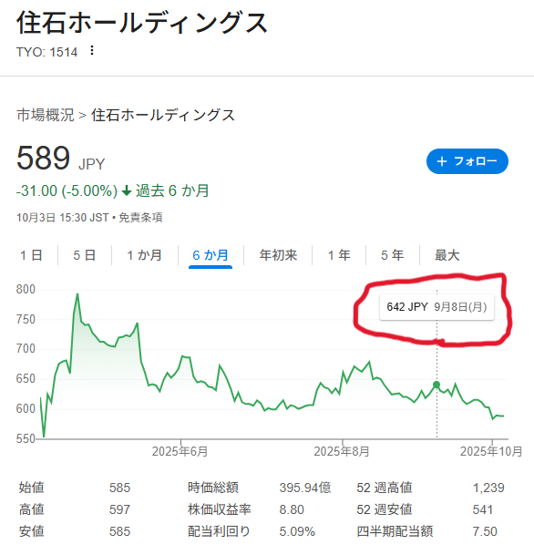 現在は589円まで下落、642円で売却しておいて良かった???